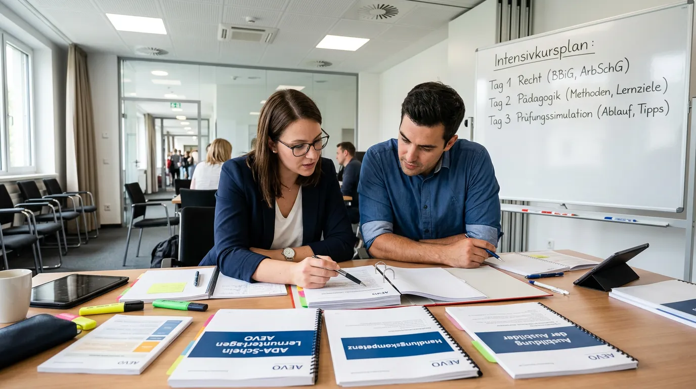 Ein Intensivkurs passt zu dir, wenn du bereits berufliche Erfahrung hast. Das ist der wichtigste Faktor. Wenn du bereits fünf Jahre in deinem Beruf praktizierst und viel Kontakt mit Auszubildenden hattest, dann hast du Vorwissen. Das macht das schnelle Lernen leichter.