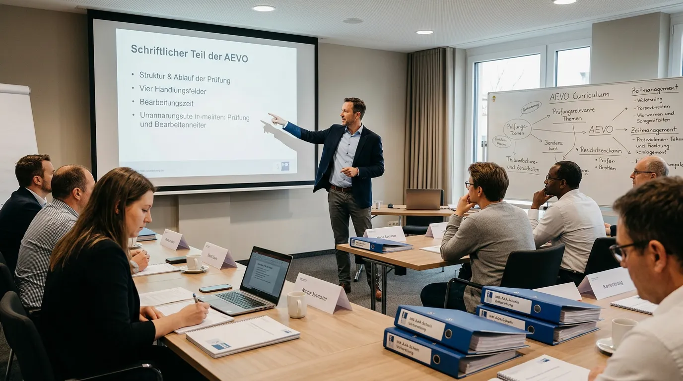 Der schriftliche Teil der IHK-Prüfung dauert 180 Minuten und besteht aus Aufgaben, die sich auf die vier Handlungsfelder der AEVO beziehen. Die Aufgaben sind praxisnah und oft in Fallbeispielen formuliert. Du brauchst nicht nur theoretisches Wissen, sondern musst zeigen, dass du die Inhalte auf konkrete Situationen anwenden kannst.